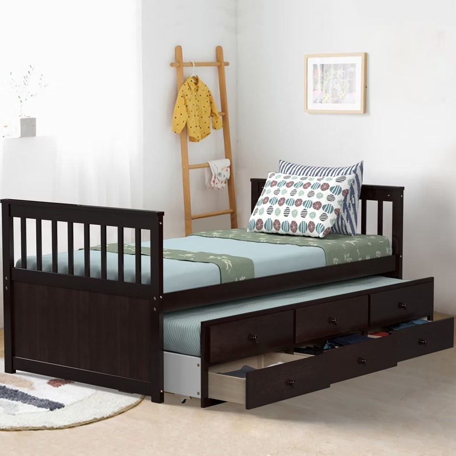 Twin Kapitänsbett mit Ausziehbett und Schubladen Stauraum für Kinderzimmer