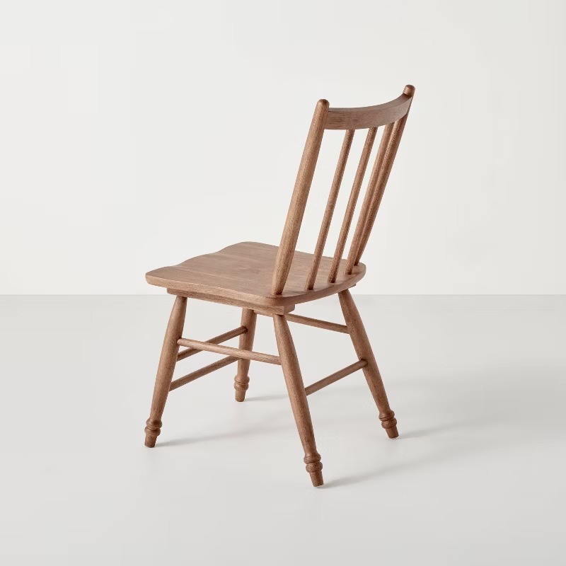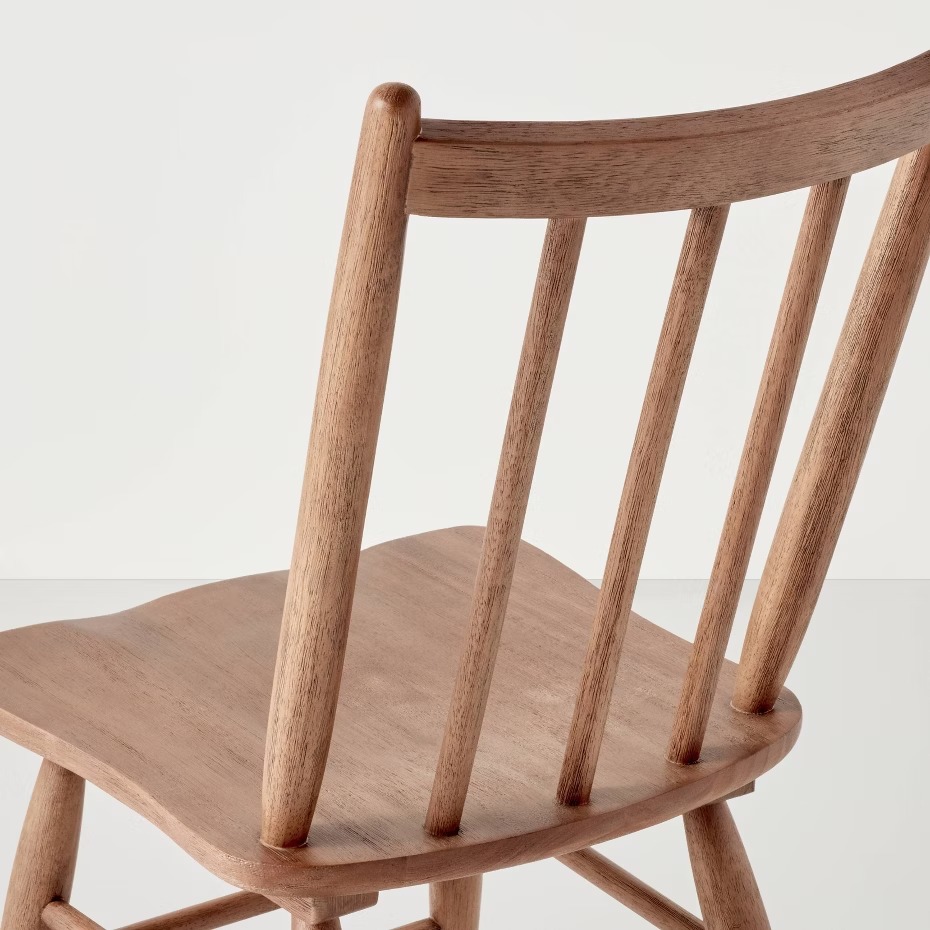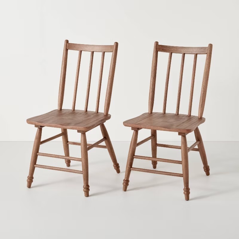Die Stühle sind aus Holz gefertigt und verfügen über eine stabile Konstruktion für den Einsatz im Ess- oder Wohnbereich. Die Gesamtmaße betragen ca. 45,7 cm Breite, 57,2 cm Tiefe und 91,4 cm Höhe, mit einer Sitzhöhe von ca. 45,7 cm.