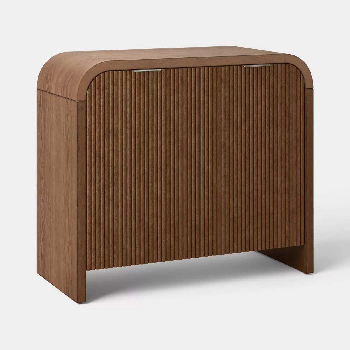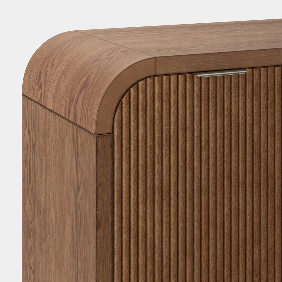 Der zweitürige Aufbewahrungsschrank ist ein freistehendes Möbelstück zur Organisation verschiedener Haushaltsgegenstände. Er verfügt über verstellbare Innenböden, die eine flexible Aufbewahrung von Büchern, Alltagsgegenständen oder Dekoration ermöglichen. Die Konstruktion besteht aus Holzwerkstoffen in dunkler Holzoptik und bietet eine stabile, geschlossene Stauraumlösung. Die Oberfläche kann als zusätzliche Ablagefläche für Gegenstände wie Bilderrahmen oder Dekoration genutzt werden. Eine integrierte Kabelführung ermöglicht die geordnete Nutzung von elektronischen Geräten. Der Schrank eignet sich für Wohnbereiche wie Wohnzimmer, Arbeitszimmer oder Flur. Maße: ca. 86,5 x 77 x 40 cm (H x B x T). Lieferung inklusive Schrankbauteile und Montageanleitung.
